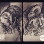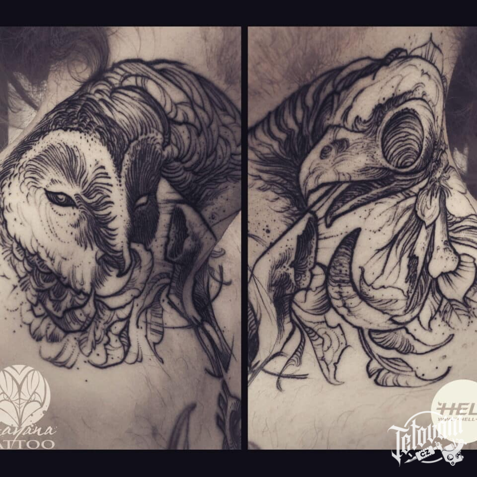Tetování zvíře sova, lebka na krk
