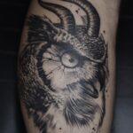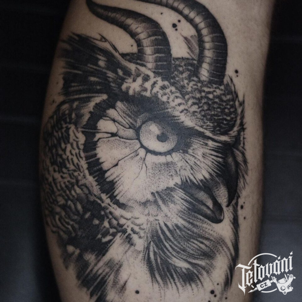 Tetování zvíře sova na lýtku