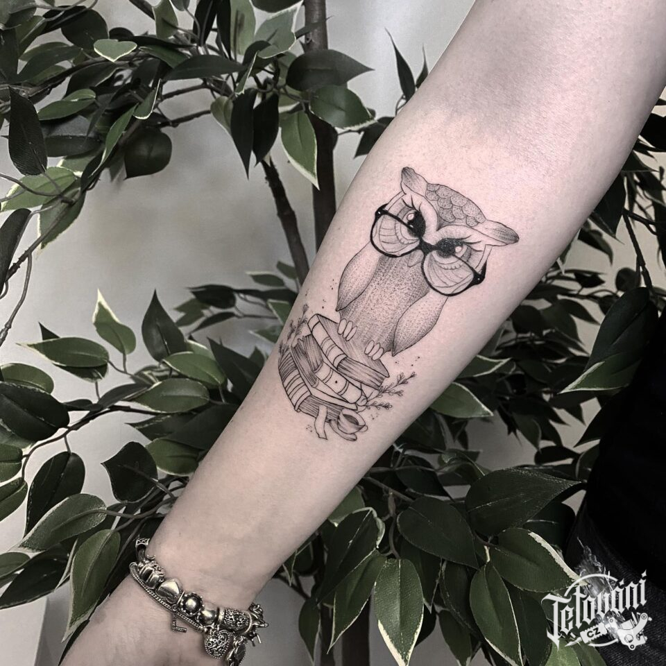 Tetování zvíře sova na předloktí