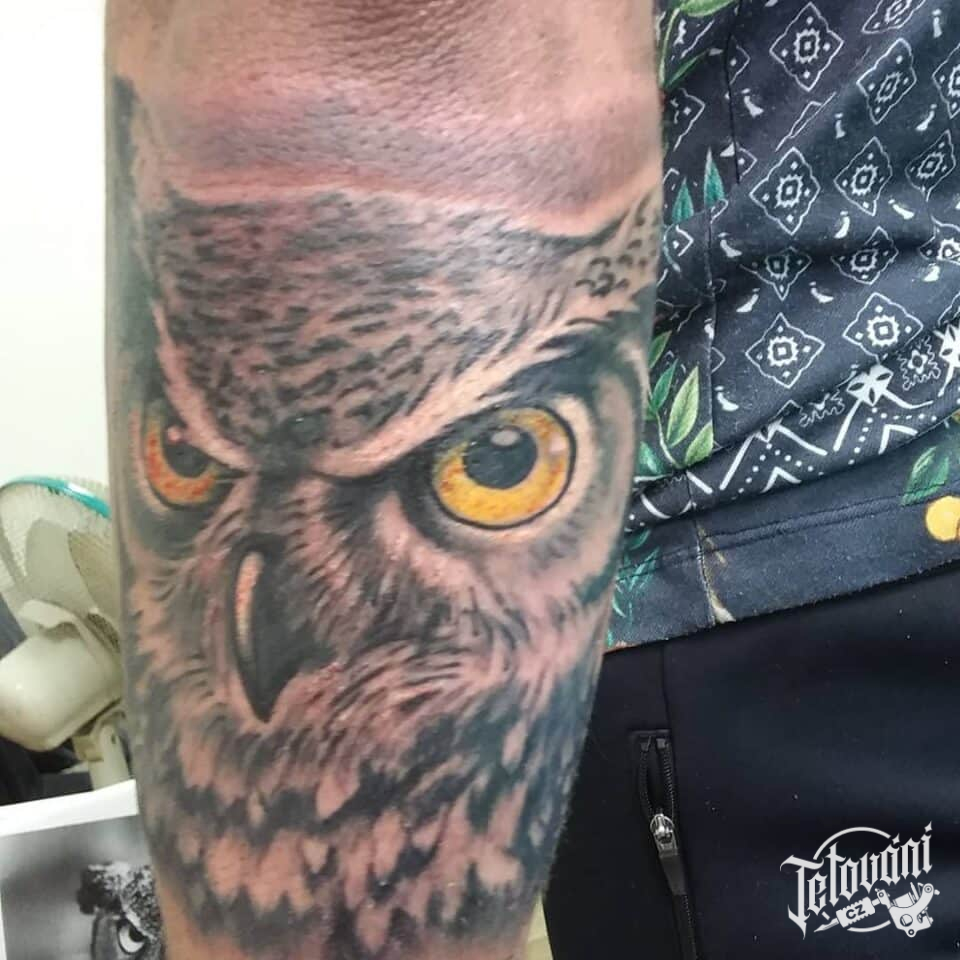 Tetování zvíře sova na předloktí