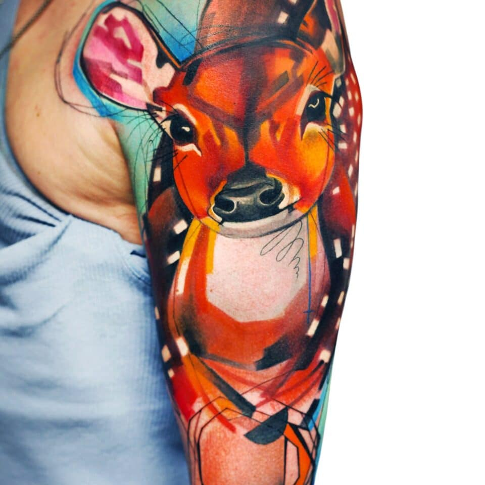 Tetování zvíře, srnka na rameni