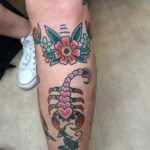 Tetování zvíře štír a květ na holeň