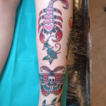 Tetování zvíře štír a smrtihlav na předloktí