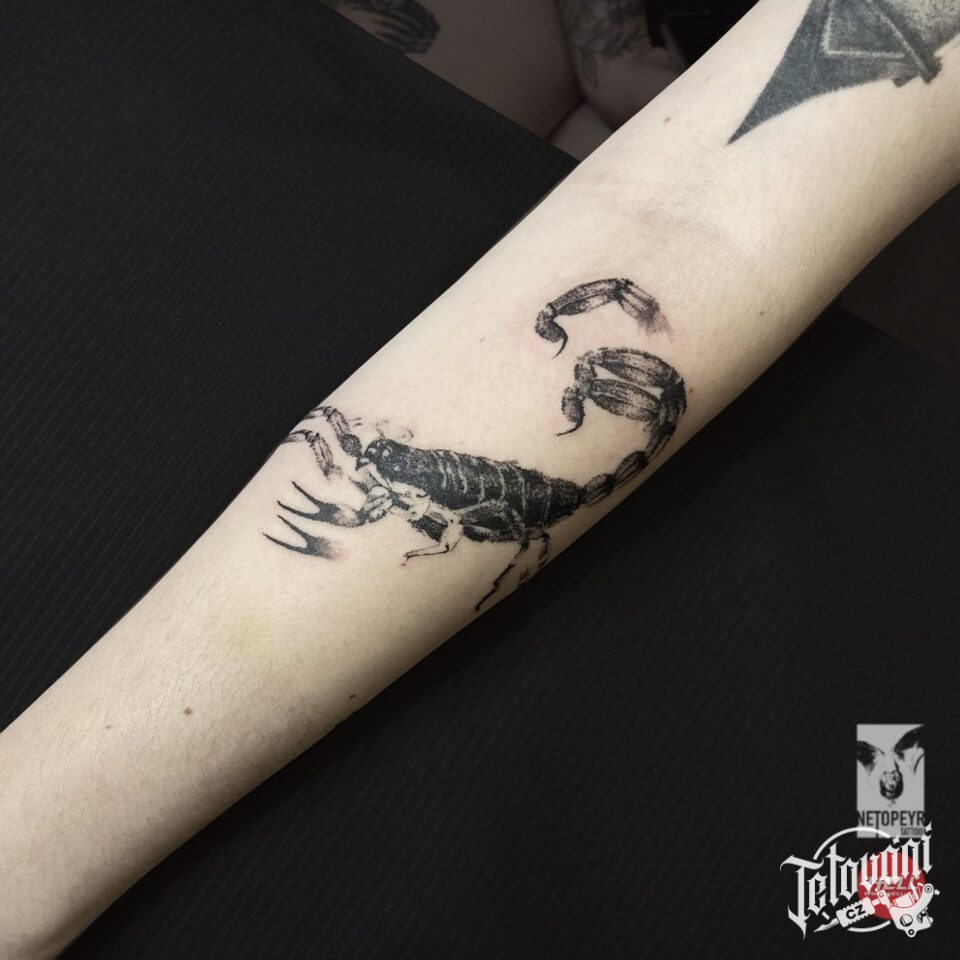 Tetování zvíře štír, symbol na předloktí