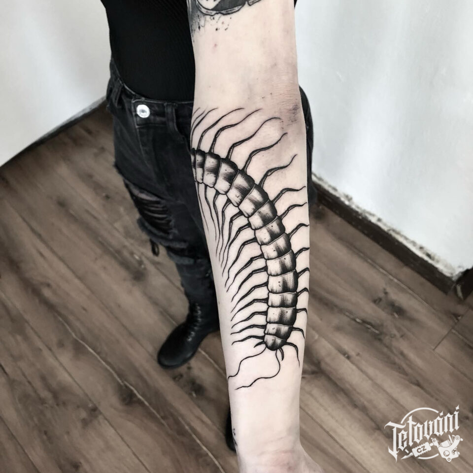 Tetování zvíře, stonožka na předloktí