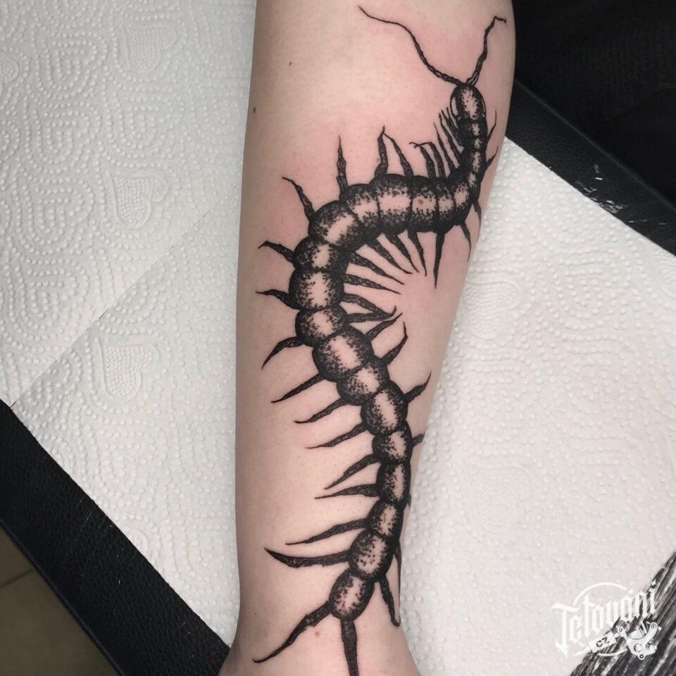 Tetování zvíře, stonožka na předloktí