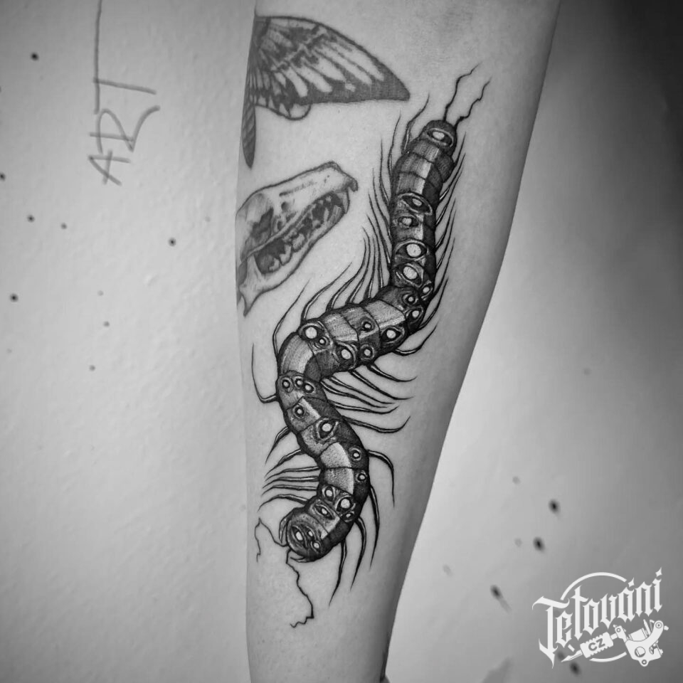 Tetování zvíře, stonožka na předloktí