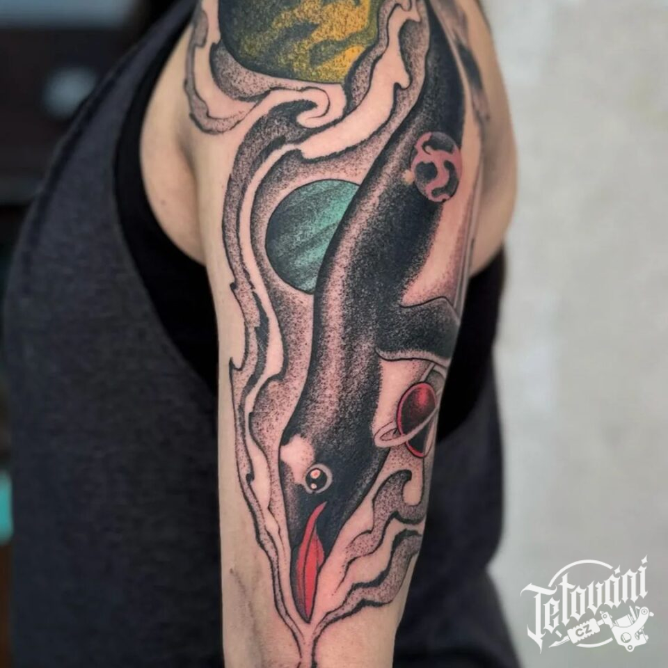 Tetování zvíře tučňák, tvary na rameno