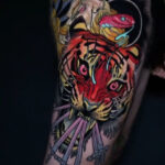 Tetování zvíře tygr, had, portrét Zeus na stehno