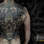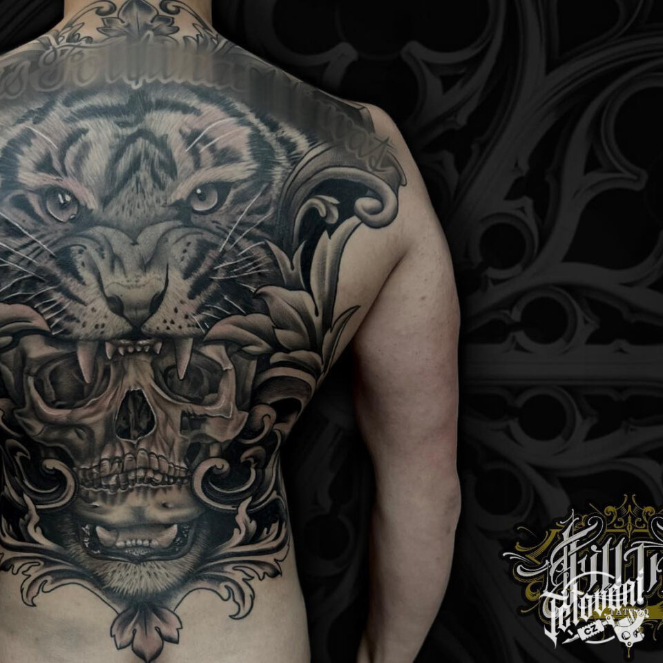 Tetování zvíře tygr, lebka na záda