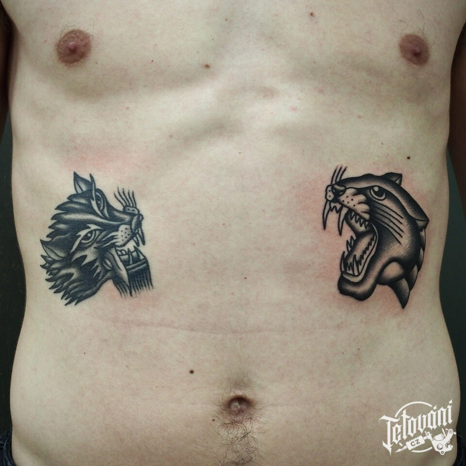 Tetování zvíře tygr, lev na hrudník