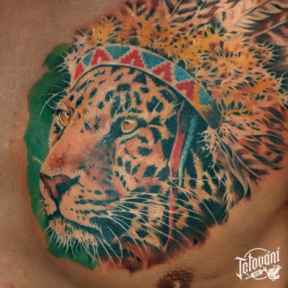 Tetování zvíře, tygr na hrudi
