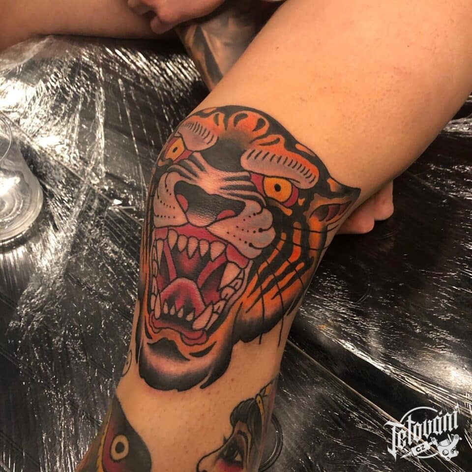 Tetování zvíře, tygr na koleni