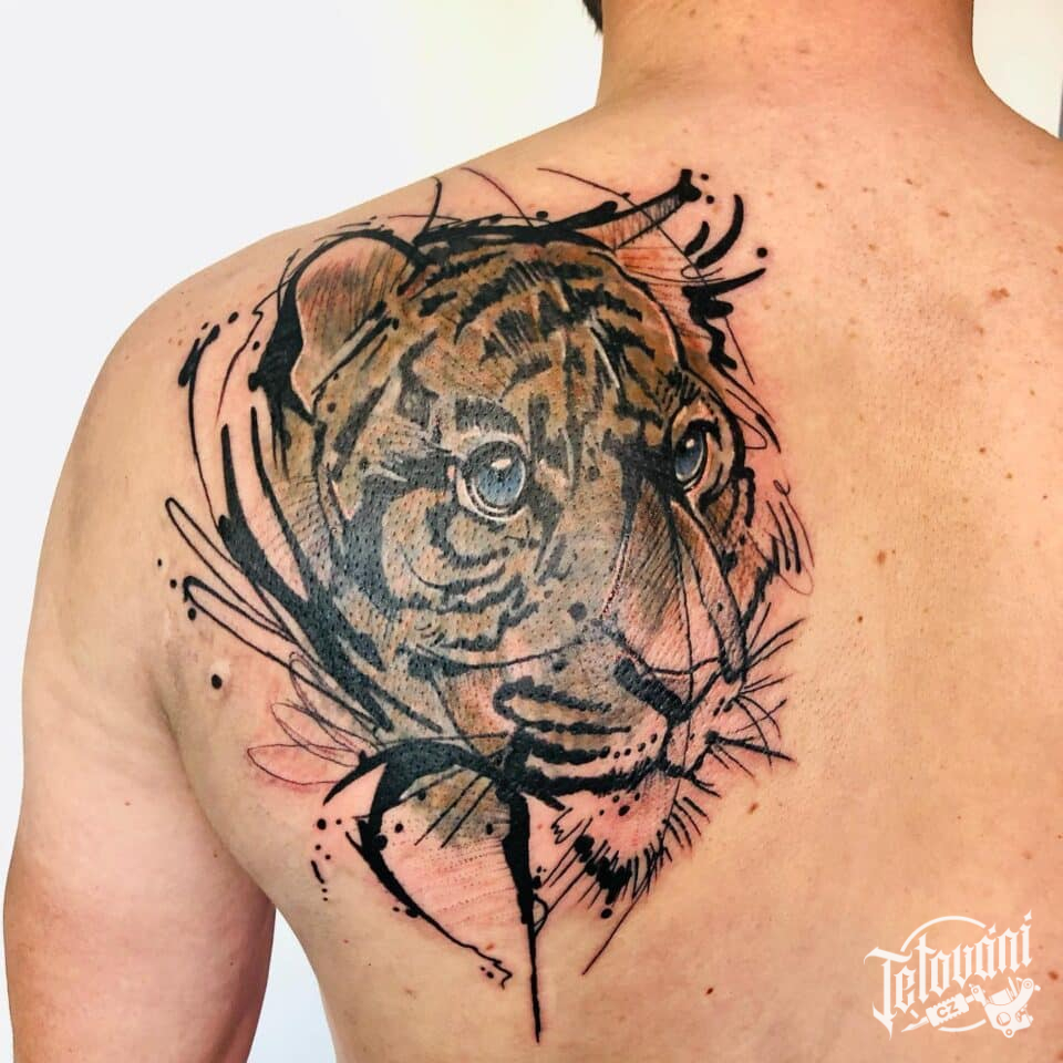Tetování zvíře tygr na lopatku