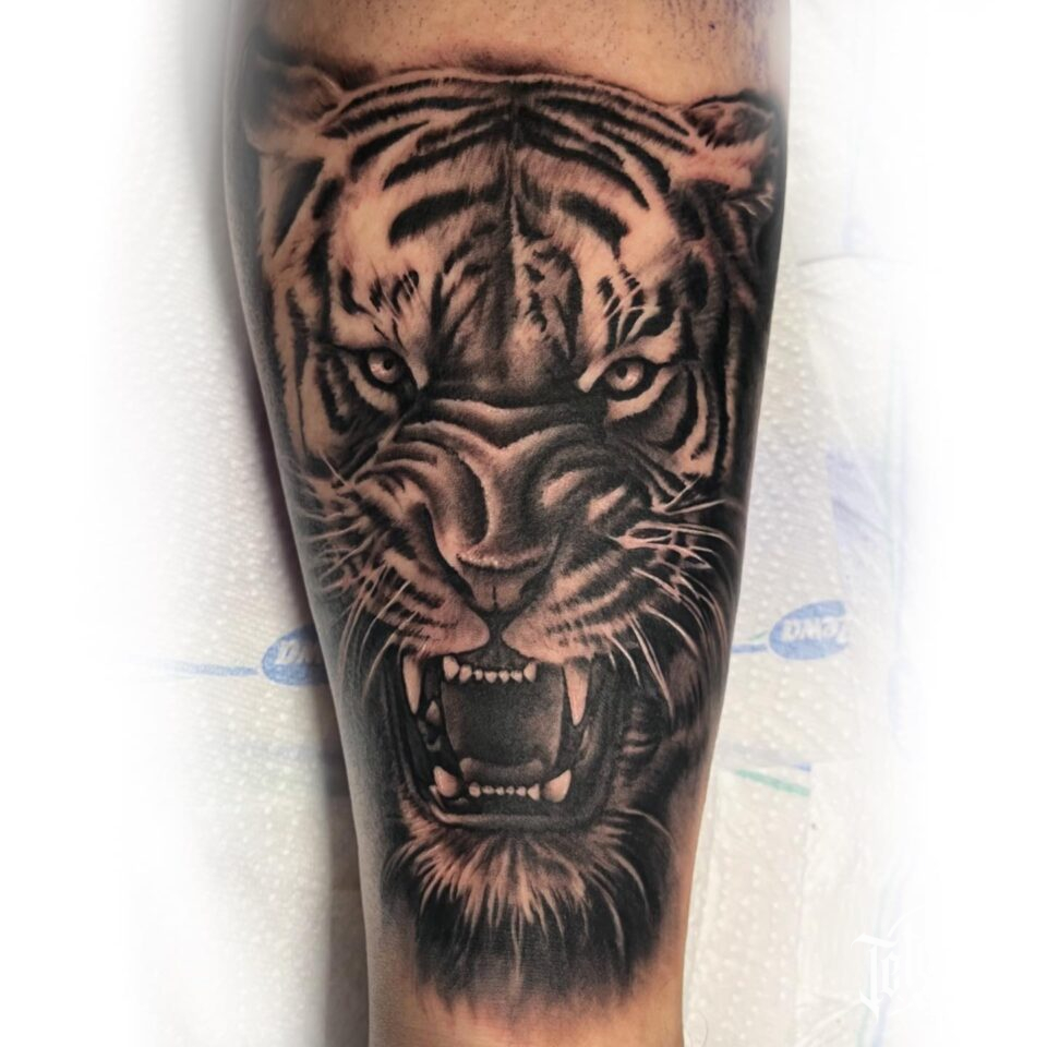 Tetování zvíře tygr na lýtko