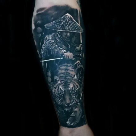 Tetování zvíře tygr na lýtko