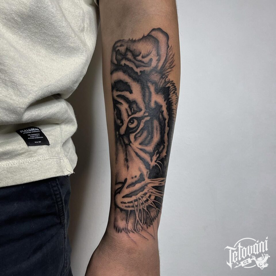 Tetování zvíře tygr na předloktí