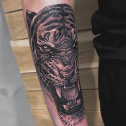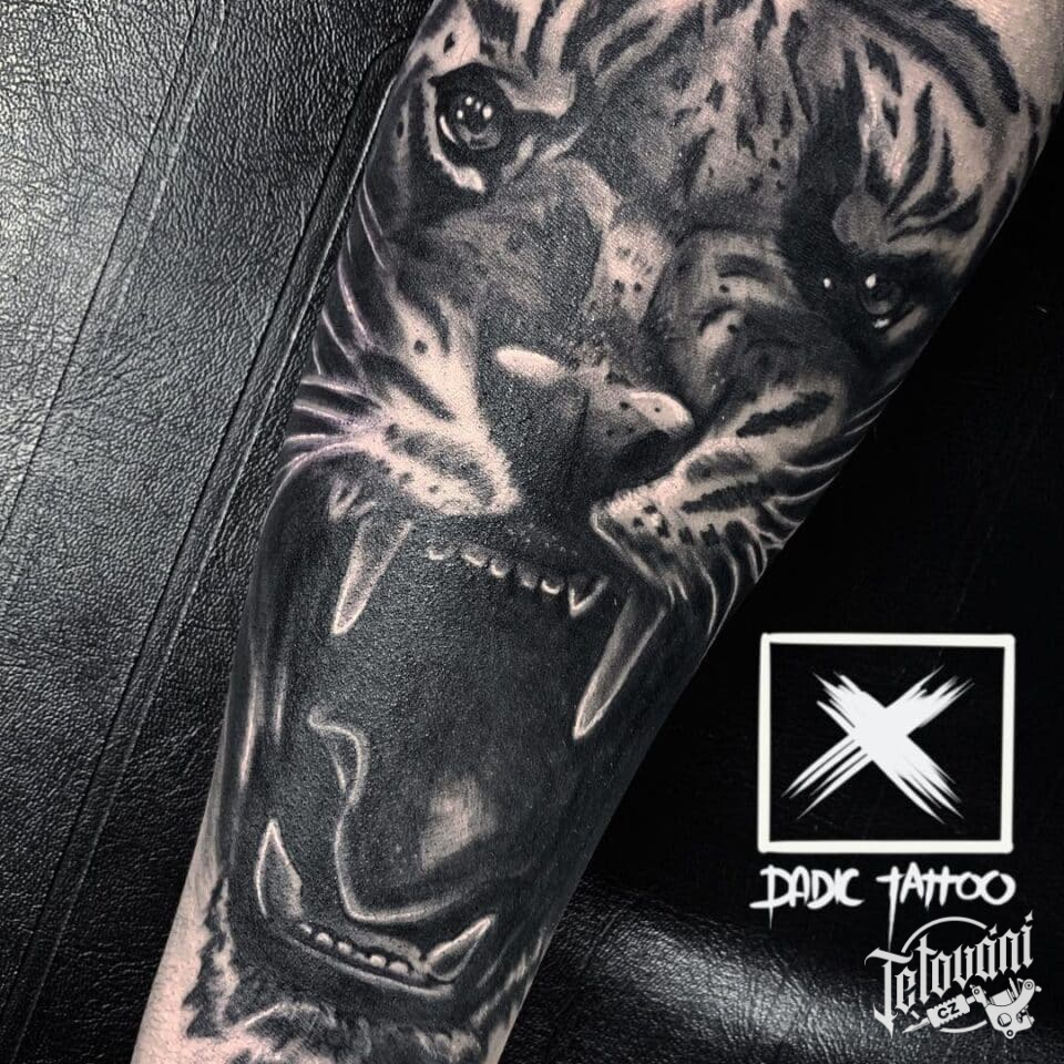 Tetování zvíře, tygr na předloktí