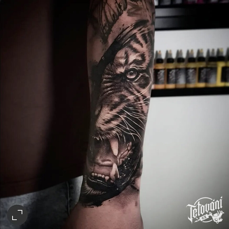 Tetování zvíře tygr na předloktí