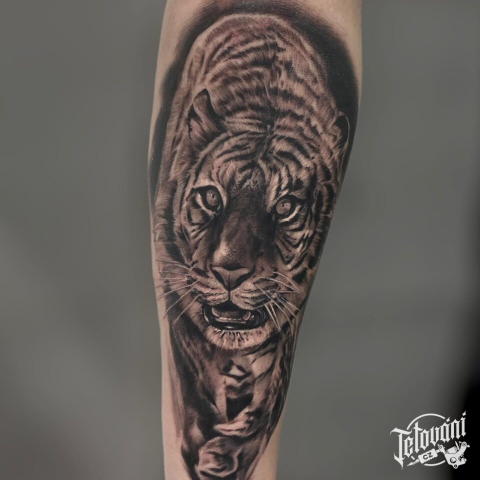 Tetování zvíře, tygr na předloktí