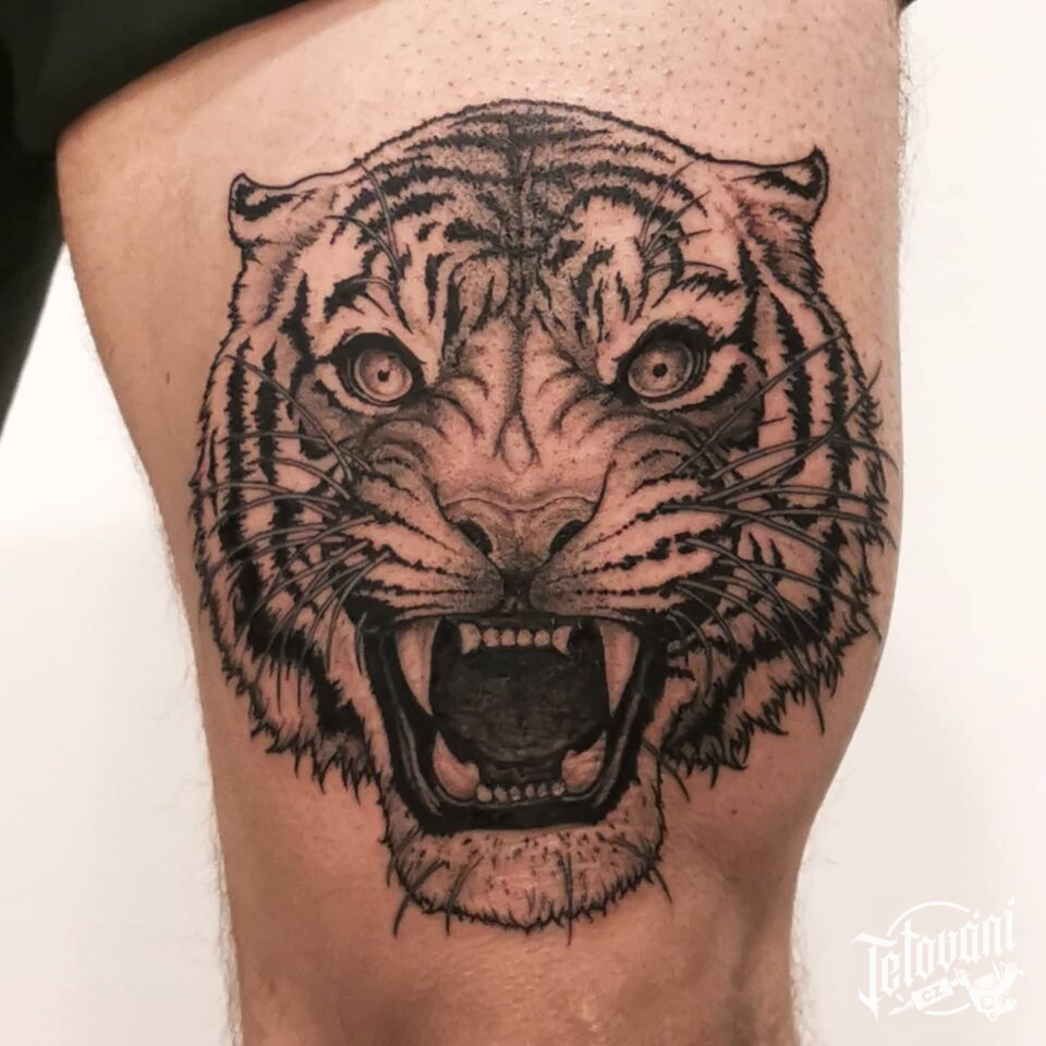 Tetování zvíře tygr na stehno