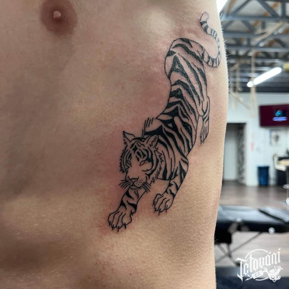 Tetování zvíře, tygr na žebrech
