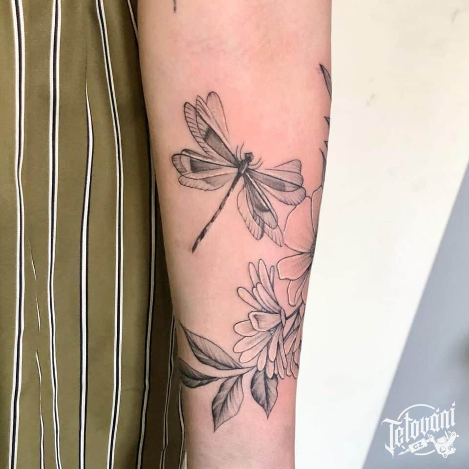 Tetování zvíře vážka na předloktí
