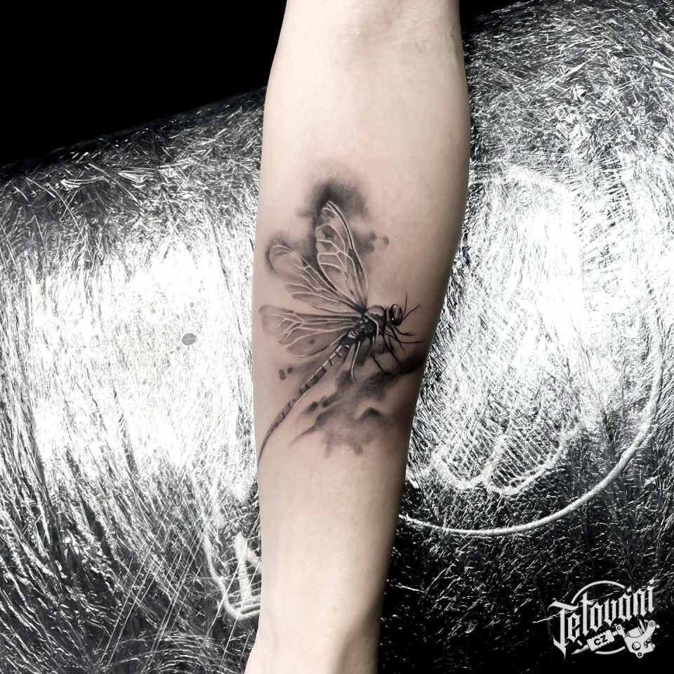 Tetování zvíře vážka na předloktí