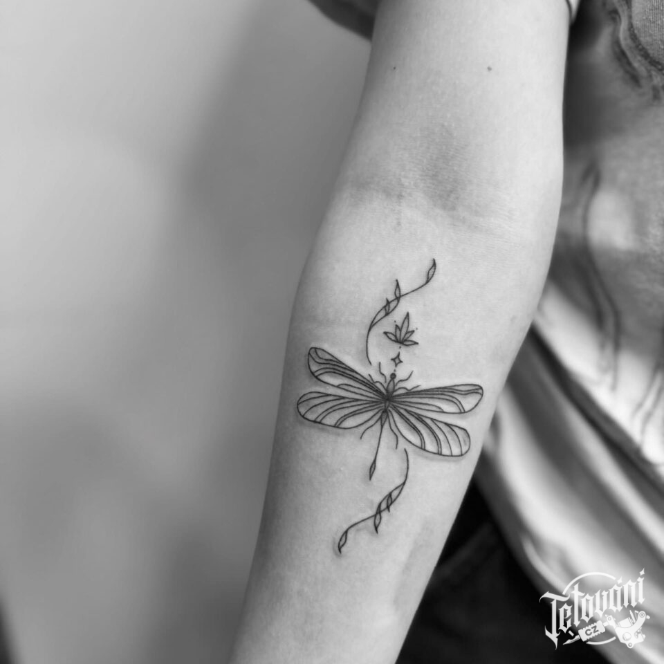 Tetování zvíře, vážka na předloktí