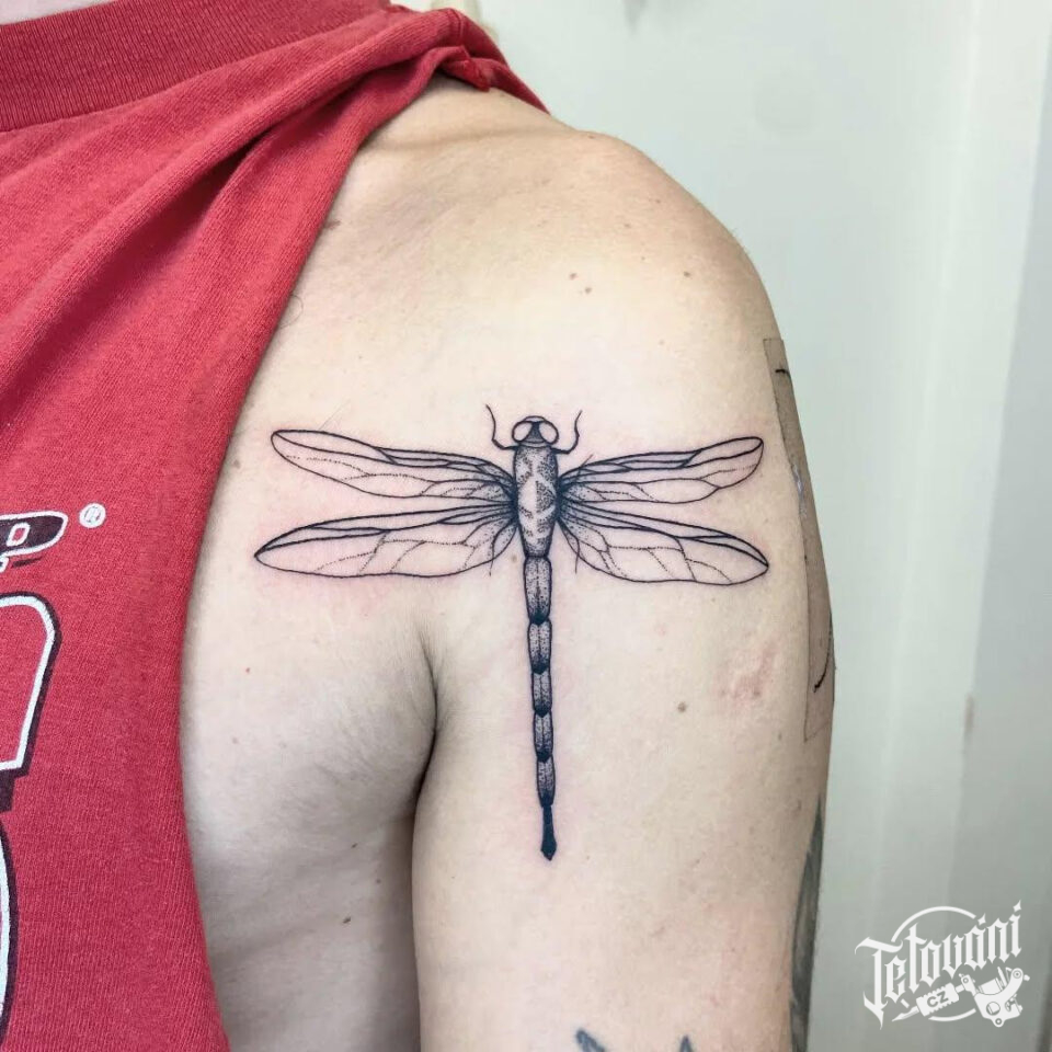 Tetování zvíře, vážka na rameni
