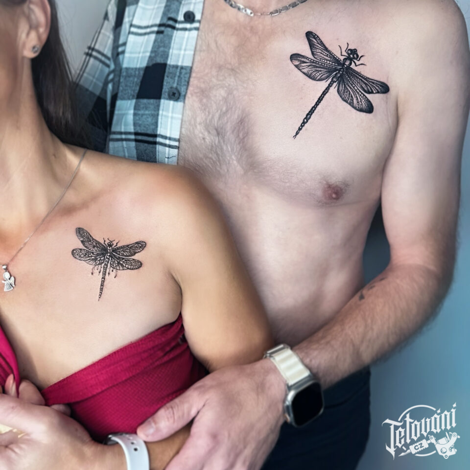 Tetování zvíře vážka pod klíční kost