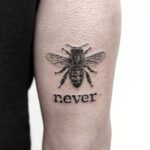 Tetování zvíře, včela a nápis na paži