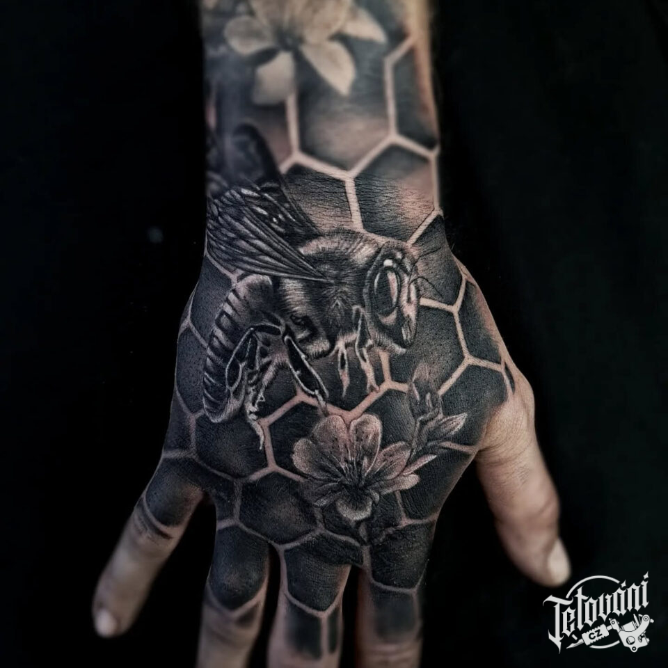 Tetování zvíře včela na hřbet ruky