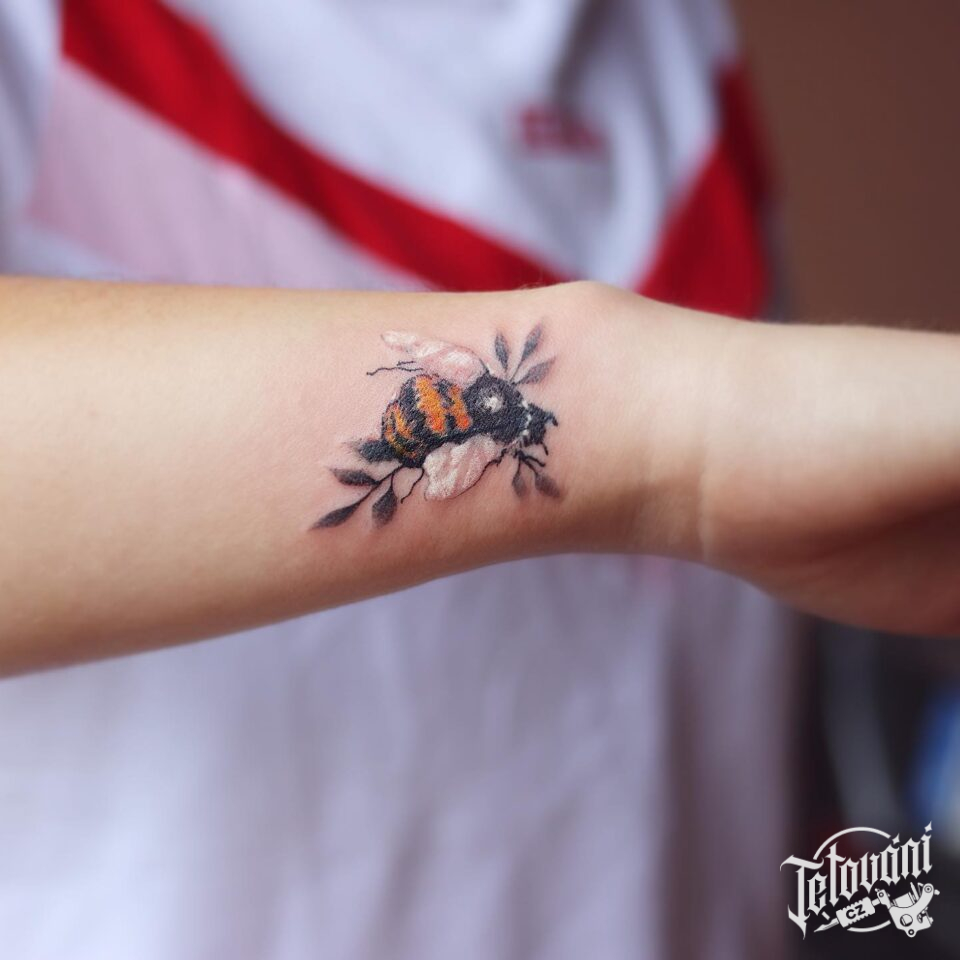 Tetování zvíře včela na předloktí