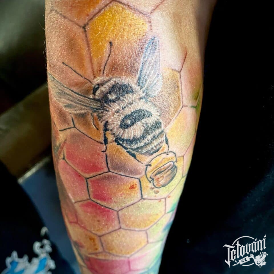 Tetování zvíře včela na předloktí