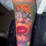 Tetování zvíře, včela, portrét ženy na paži