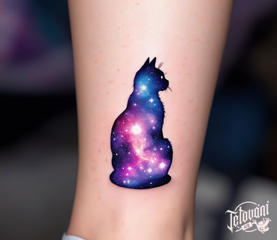 Tetování zvíře, vesmírná kočka silueta nad kotníkem