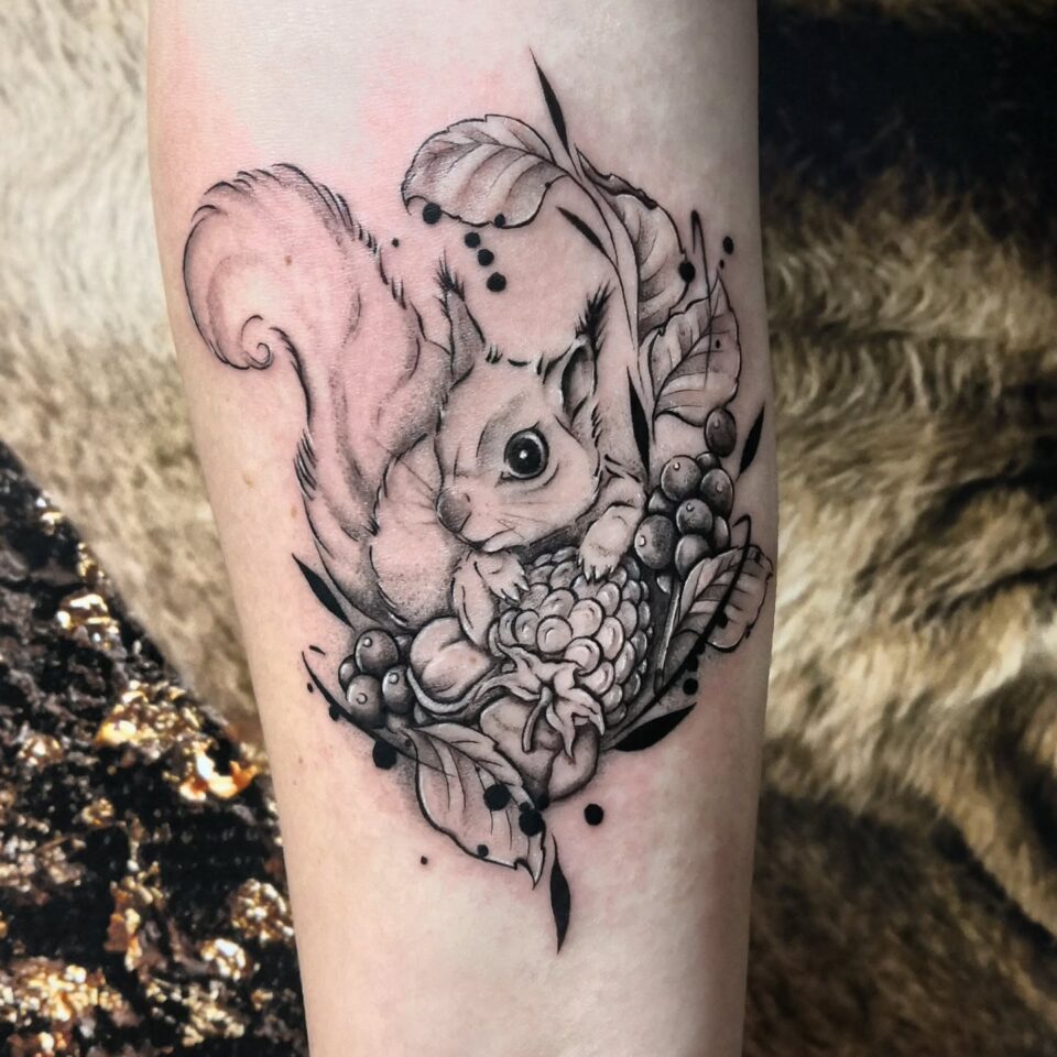 Tetování zvíře veverka na předloktí