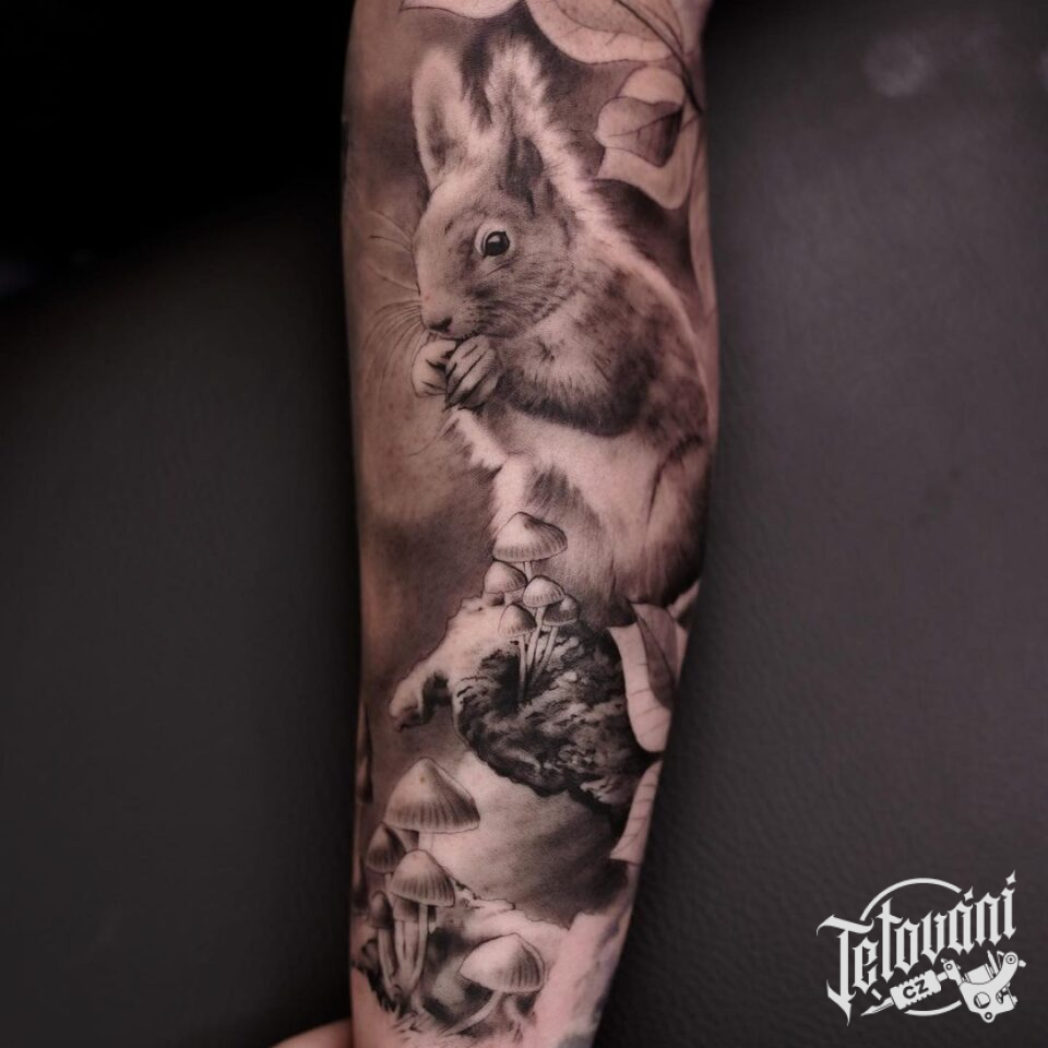 Tetování zvíře veverka na předloktí