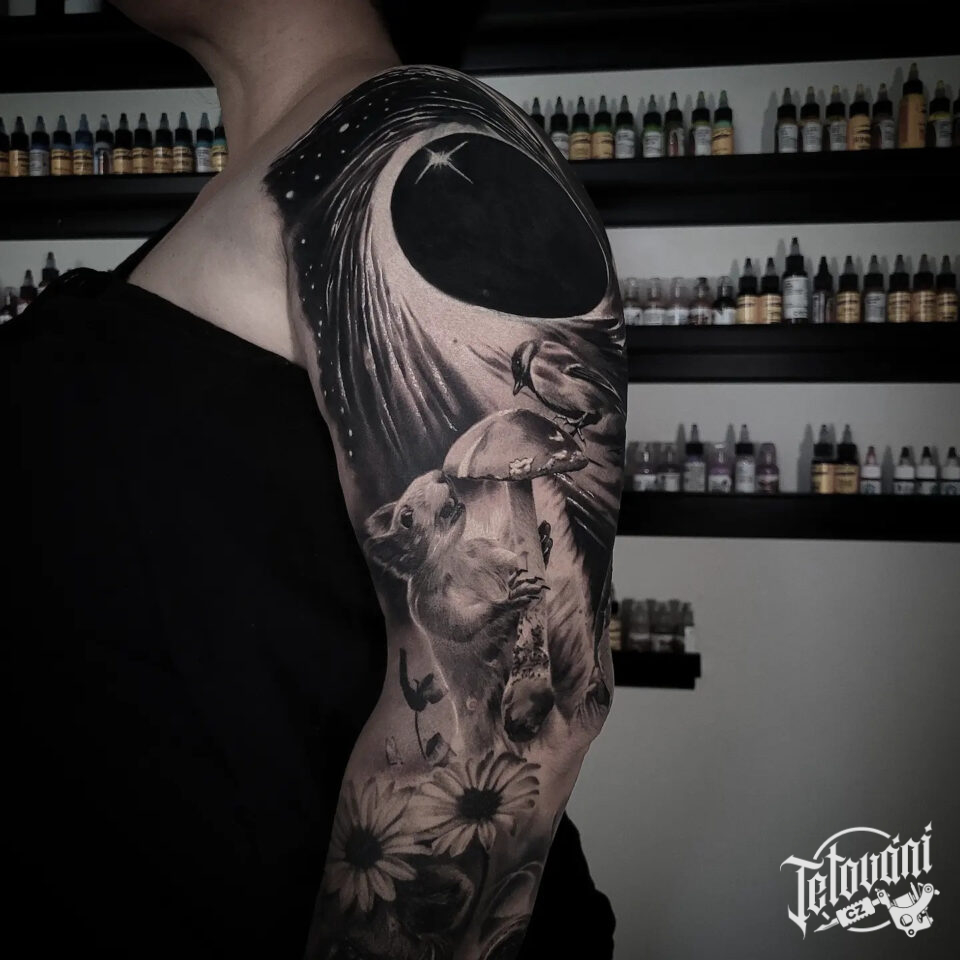Tetování zvíře veverka, vesmír, příroda na ruku