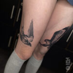 Tetování zvíře vlaštovka a pták na stehna