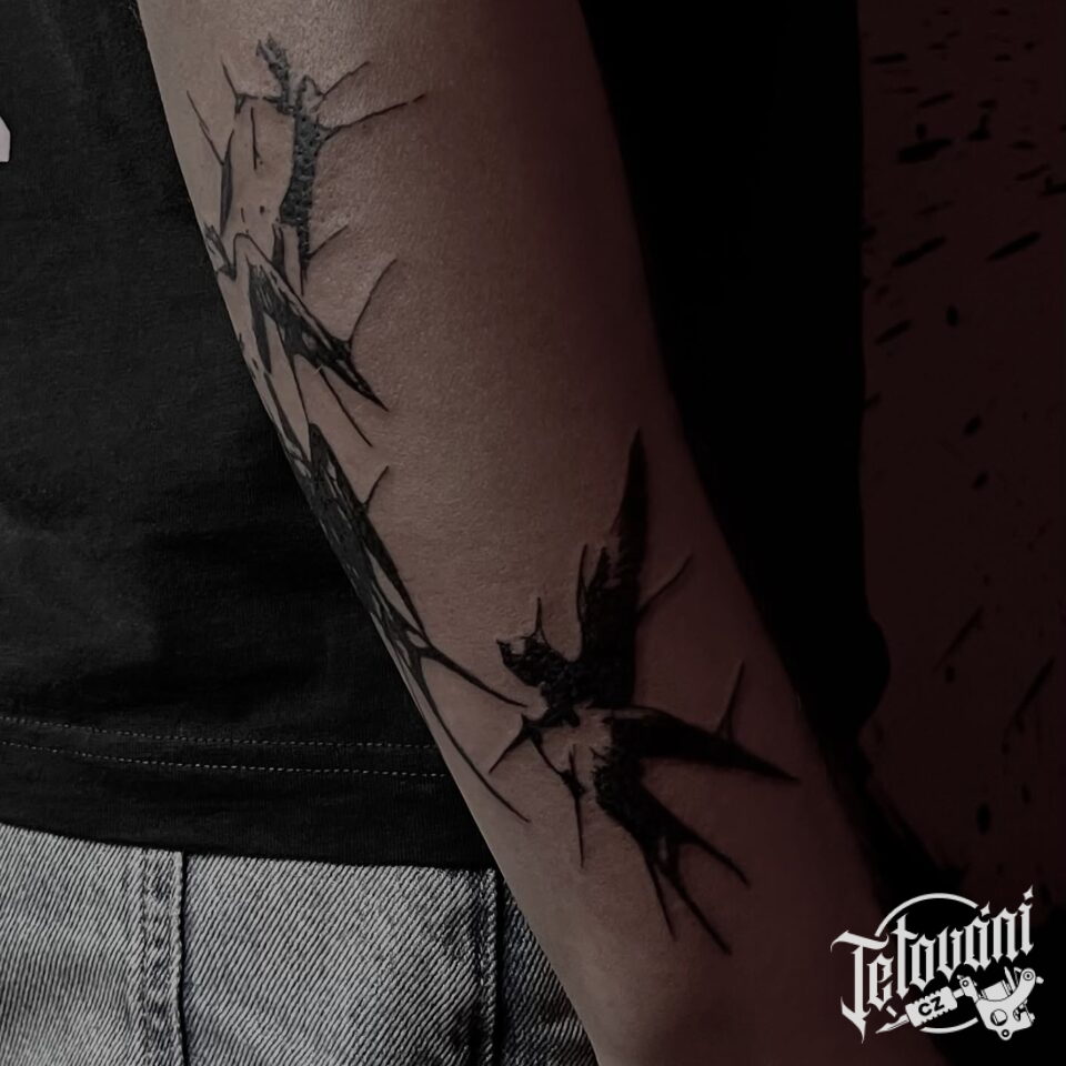 Tetování zvíře vlaštovka na předloktí