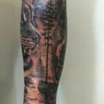 Tetování zvíře vlk a tygr, příroda, les na předloktí