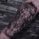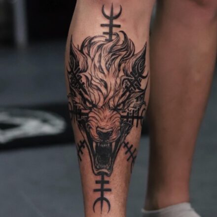 Tetování zvíře vlk, bojovník, symbol na holeň