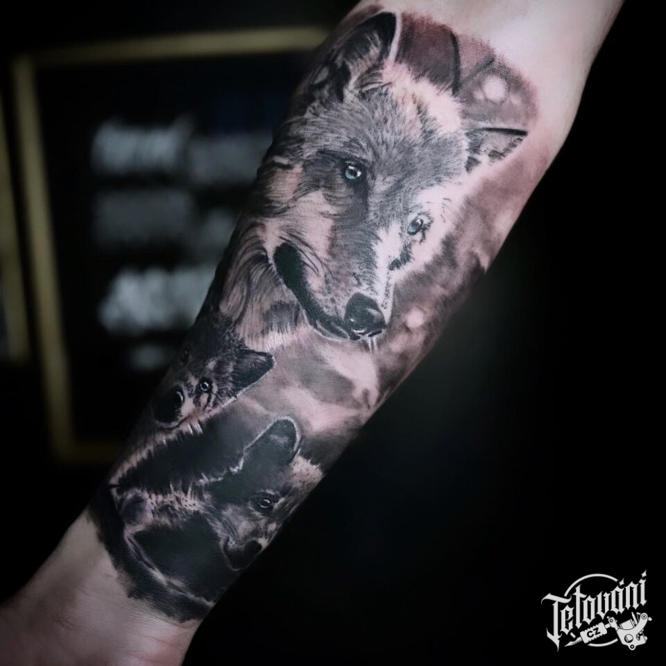 Tetování zvíře vlk, hlava vlka na předloktí