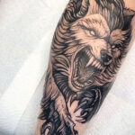 Tetování zvíře vlk na holeň