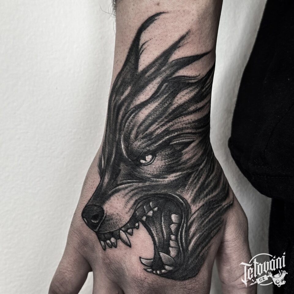 Tetování zvíře vlk na hřbet ruky