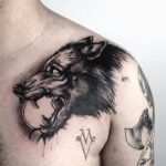 Tetování zvíře, vlk na hrudi