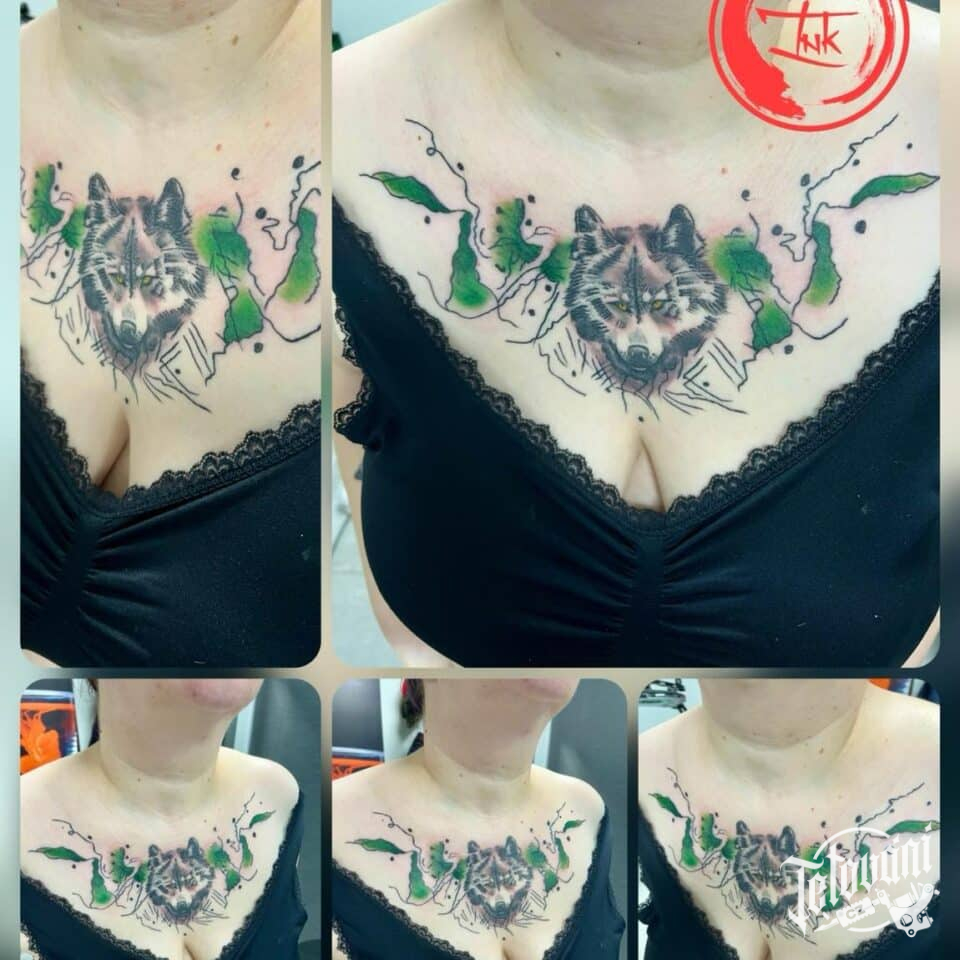 Tetování zvíře, vlk na hrudi