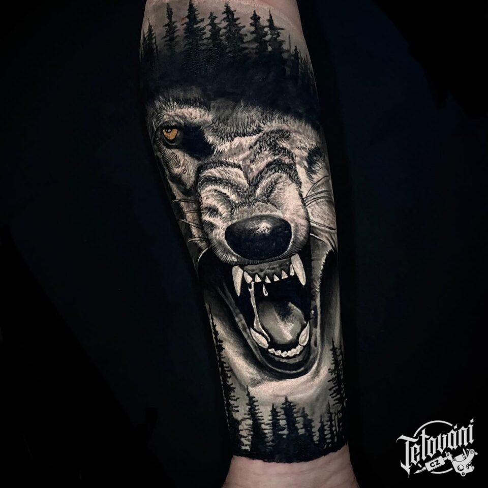 Tetování zvíře, vlk na předloktí